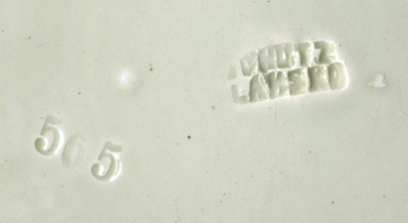 majolika barevně glazovaná, okolo okraje reliéfní ornament, uprostřed reliéf květin a motýlka. Značeno tlačeně SCHÜTZ BLANSKO (po roce 1900), případně symbol lukostřelce a MADE IN AUSTRIA (1897-1900), model 565, resp. 566. 19/20. století.