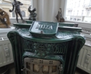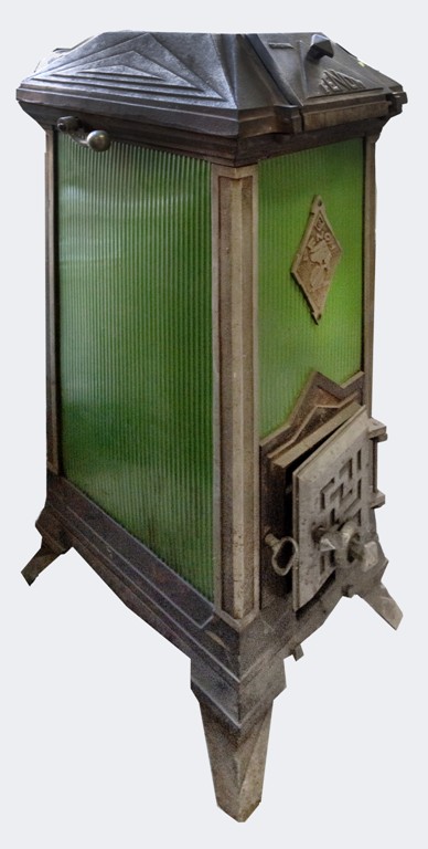 krytý zeleným smaltem, troje dvířka. Je potřeba opravit
