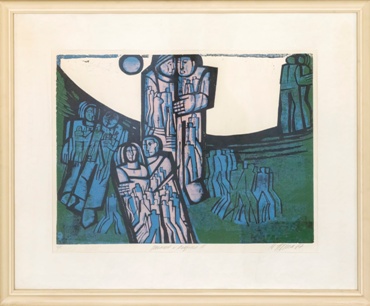 barevná litografie, signováno dole uprostřed WIELGUS, vpravo dole tužkou datace 74 (1974). Vzadu poznámka "Ze sbírky dr. Rudolfa Winklera vedeno pod č. 74." Adjustováno v paspartě, pod sklem, rámováno.