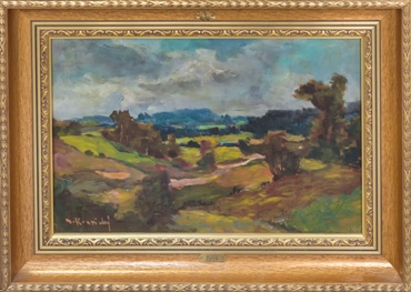 olej na dřevěné desce, signováno vlevo dole M. JAVŮREK, datováno 1948. Široký vyřezávaný rám zlaté barvy.