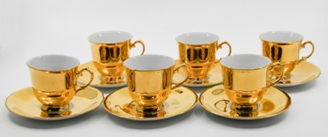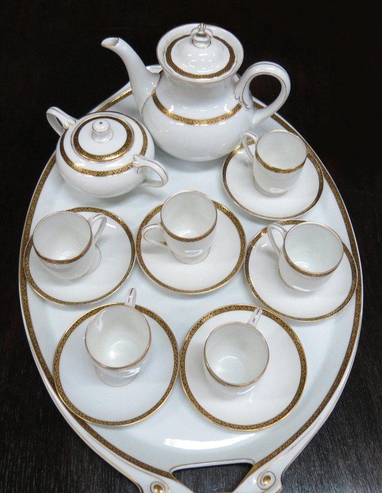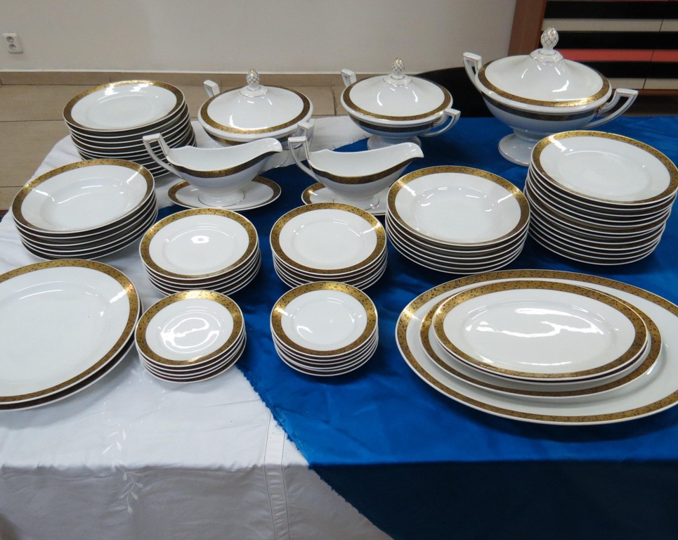 bílý, glazovaný, na každém kousku zlatý pás zdobený