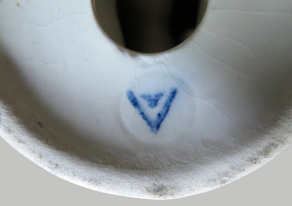 glazovaná, zeleně tištěná značka s H a kočkou v