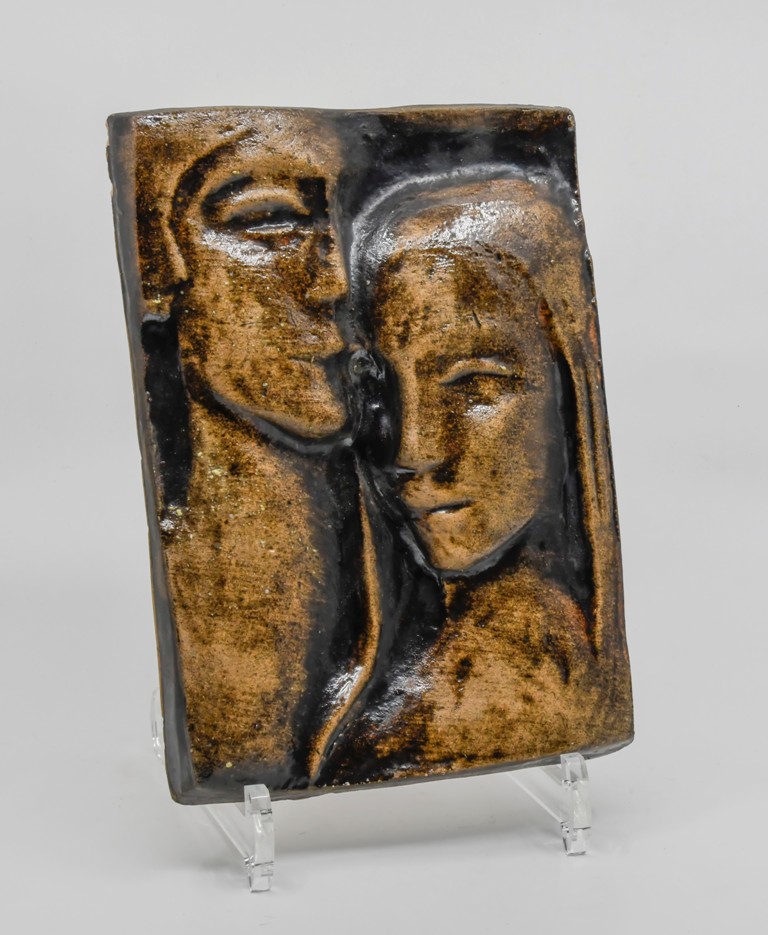 hlína barevně glazovaná, plasticky zdobená motivem